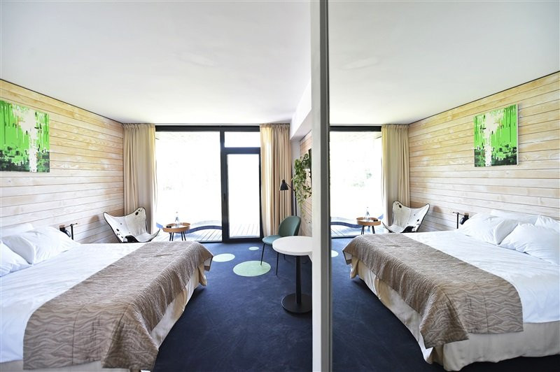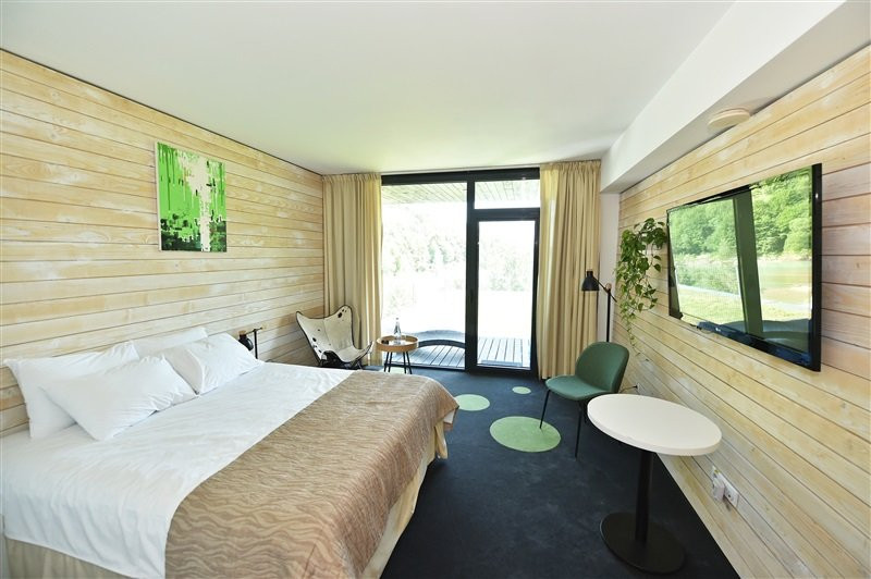 Fiecare din cele 9 camere sunt decorate in culori diferite: Violet, Verde, Galben, Rosu, Albastru, Turquoise si dispun de   o terasa cu vedere la lac si au o suprafata cuprinsa intre 19-22 mp.Toate camerele includ TV cu ecran plat, espressor, apa plata Dorna 0,750l si baie dotat cu dus ,usctor de pr,(halate de baie si papuci).