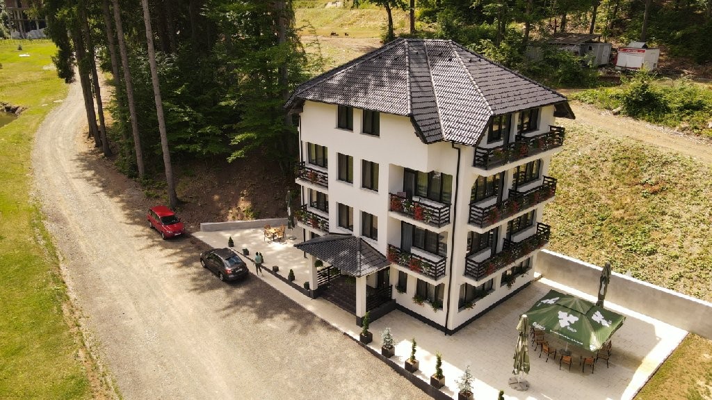 Complexul arhitectonic, realizat in anul 2006, aduce rafinamentul si nobletea caracteristice Alpilor Tirolezi pe malul lacului Miorita din statiunea Poiana Brasov (1030 metri altitudine).