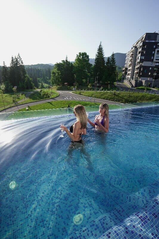 Elexus Poiana Brasov pune la dispozitia oaspetilor sai o deosebita piscina exterioara infinity. Prin amplasare si amenajare, piscina exterioara ofera cea mai facila si relaxanta experienta cu efecte benefice asupra corpului.