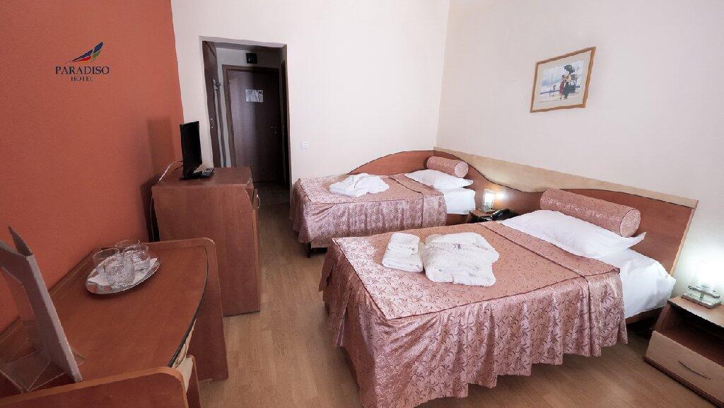 Hotel Paradiso este situat pe litoralul Marii Negre, intr-o zona linistita si pitoreasca, oferind conditii excelente de cazare si facilitati moderne. Hotelul dispune de camere confortabile, un restaurant cu bufet suedez, baruri, piscina exterioara, precum si servicii all inclusive. Este ideal pentru familii cu copii, avand facilitati speciale pentru acestia. De asemenea, oaspetii pot beneficia de acces la tratamente balneare si de recuperare. Hotelul ofera o atmosfera relaxanta, fiind locatia perfecta pentru un sejur de neuitat pe malul marii.