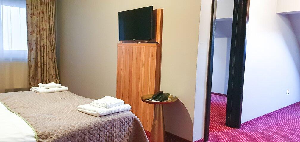 Camerele triple sunt perfect amenajate pentru grupuri mici sau familii, oferind un spatiu primitor pentru pana la 3 persoane. Decorata cu grija, aceasta camera dispune de trei paturi confortabile, creand un cadru relaxant pentru un sejur linistit. Facilitati precum aer conditionat, TV LCD cu televiziune prin cablu, Wi-Fi gratuit, minibar si dulap sunt incluse pentru confortul oaspetilor. Baia moderna ofera produse de igiena, halate si papuci, in linie cu standardele unui hotel de 3 margarete. Oaspetii beneficiaza de servicii similare cu cele oferite intr-un hotel, inclusiv curatenie zilnica si posibilitatea de a solicita facilitati suplimentare. Atmosfera placuta si atentia la detalii fac din aceasta camera tripla o alegere excelenta pentru o vacanta relaxanta intr-un cadru natural deosebit.