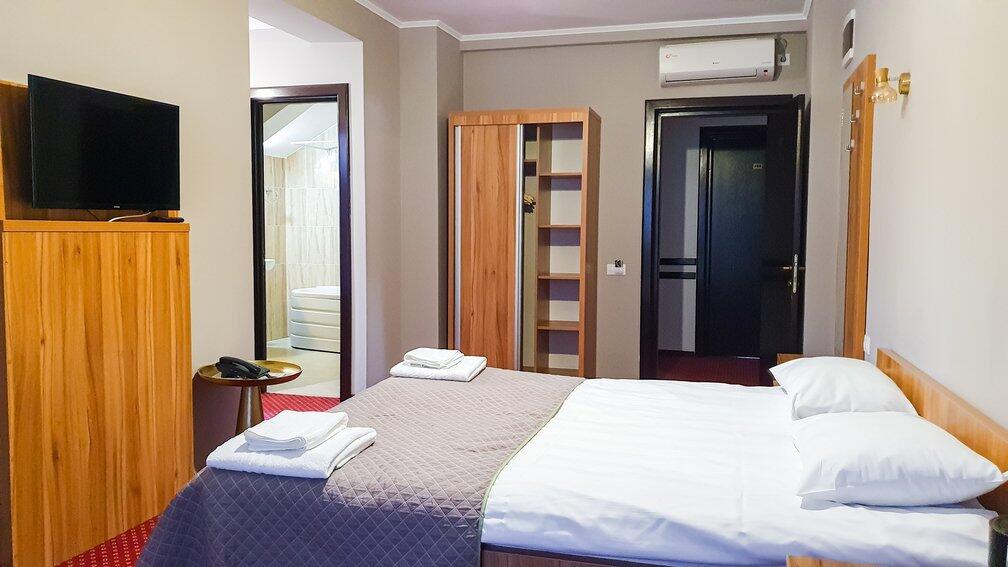 Camerele duble sunt perfecte pentru cupluri sau pentru cei care calatoresc singuri si doresc un spatiu confortabil. Aceste camere moderne sunt dotate cu paturi matrimoniale sau twin, asigurand un somn odihnitor si o atmosfera placuta. Facilitati precum aer conditionat, TV LCD cu televiziune prin cablu, Wi-Fi gratuit, minibar, dulap si o zona de relaxare adauga un plus de confort. Baia proprie este dotata cu produse de igiena, halate si papuci, pentru oaspeti ce beneficiaza de aceleasi servicii premium ca intr-un hotel de 3 margarete. Camerele duble de la Pensiunea Bucura ofera un refugiu relaxant intr-un decor rafinat, ideal pentru o vacanta de neuitat.