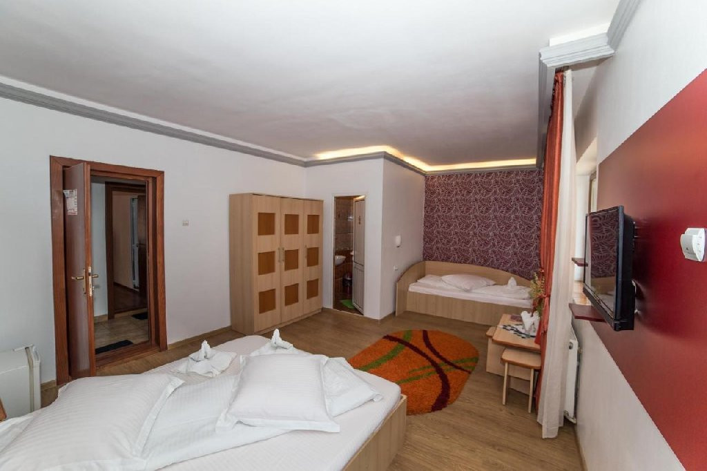 televizor+CATV, telefon si frigider, fiecare camera fiind dotata cu grup