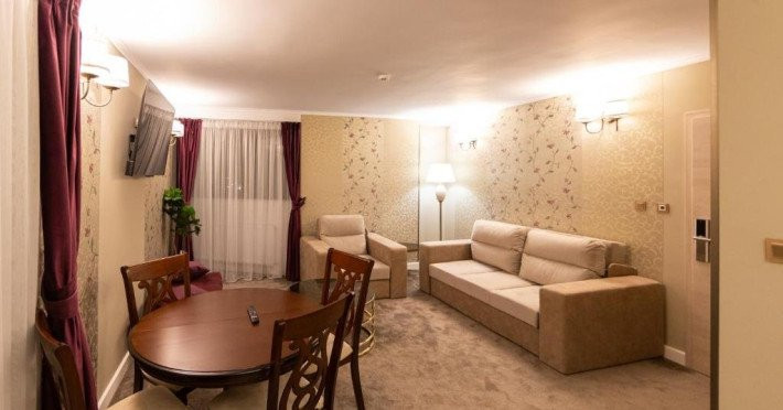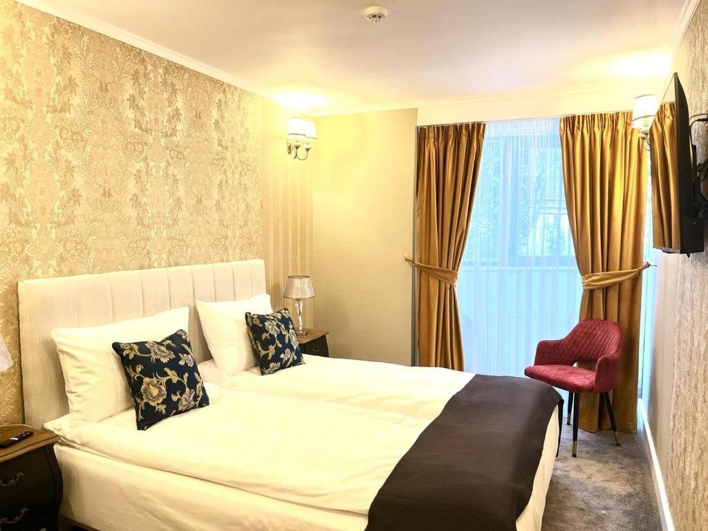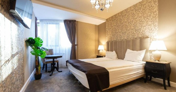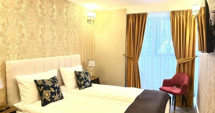 Fiecare camera dubla este dotata la standarde europene si de inalta clasa si bun gust. Se regasesc in fiecare camera televizoare generoase si minibar cat si birou pentru a petrece timp pentru fiecare necesitate.