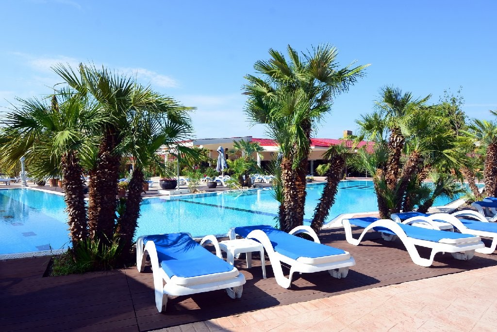 Descriere: Resortul dispune de 350 de camere duble si apartamente, piscine pentru adulti, sala de biliard, piste de bowling, tenis de masa, tenis de camp, sala de fitness, sali de conferinte a se inchiriaza contra cost, din care cea mai mare are o capacitate de 500 de locuri.
